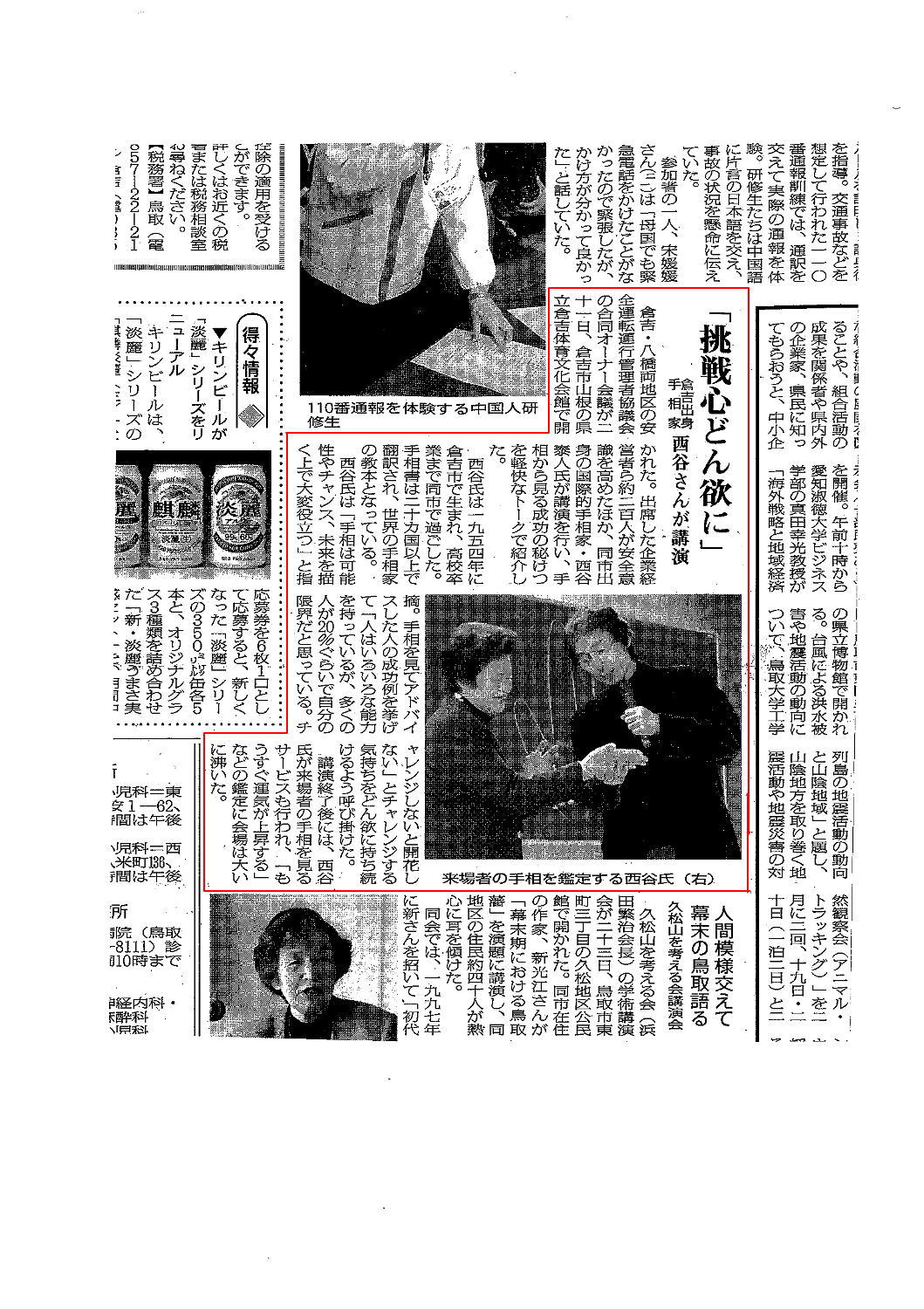 以下は24日に掲載された講演の記事です。(日本海新聞 2005、1、24朝刊)