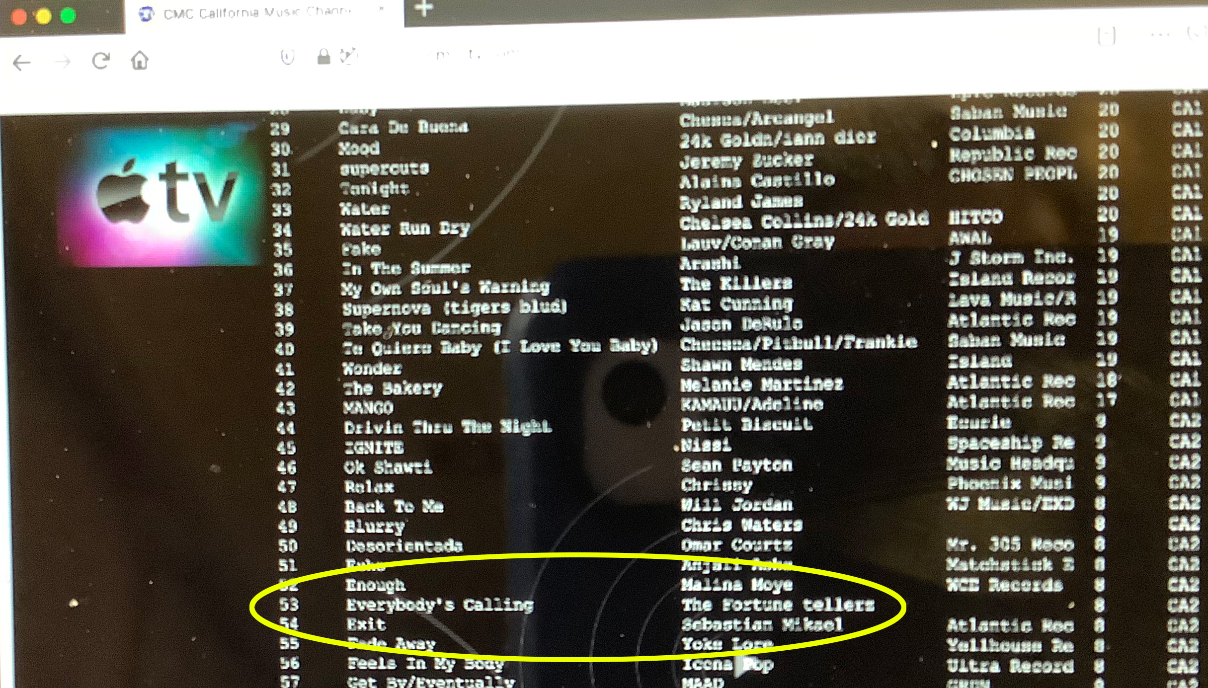 でご紹介した、私・西谷泰人が作詞・作曲した新曲、『Everybody’s Calling』(みんなが呼んでいる エブリバディーズ・コーリング) が、現在、アメリカの多くのヒットチャート(現在6つ)にランキング入りしています。