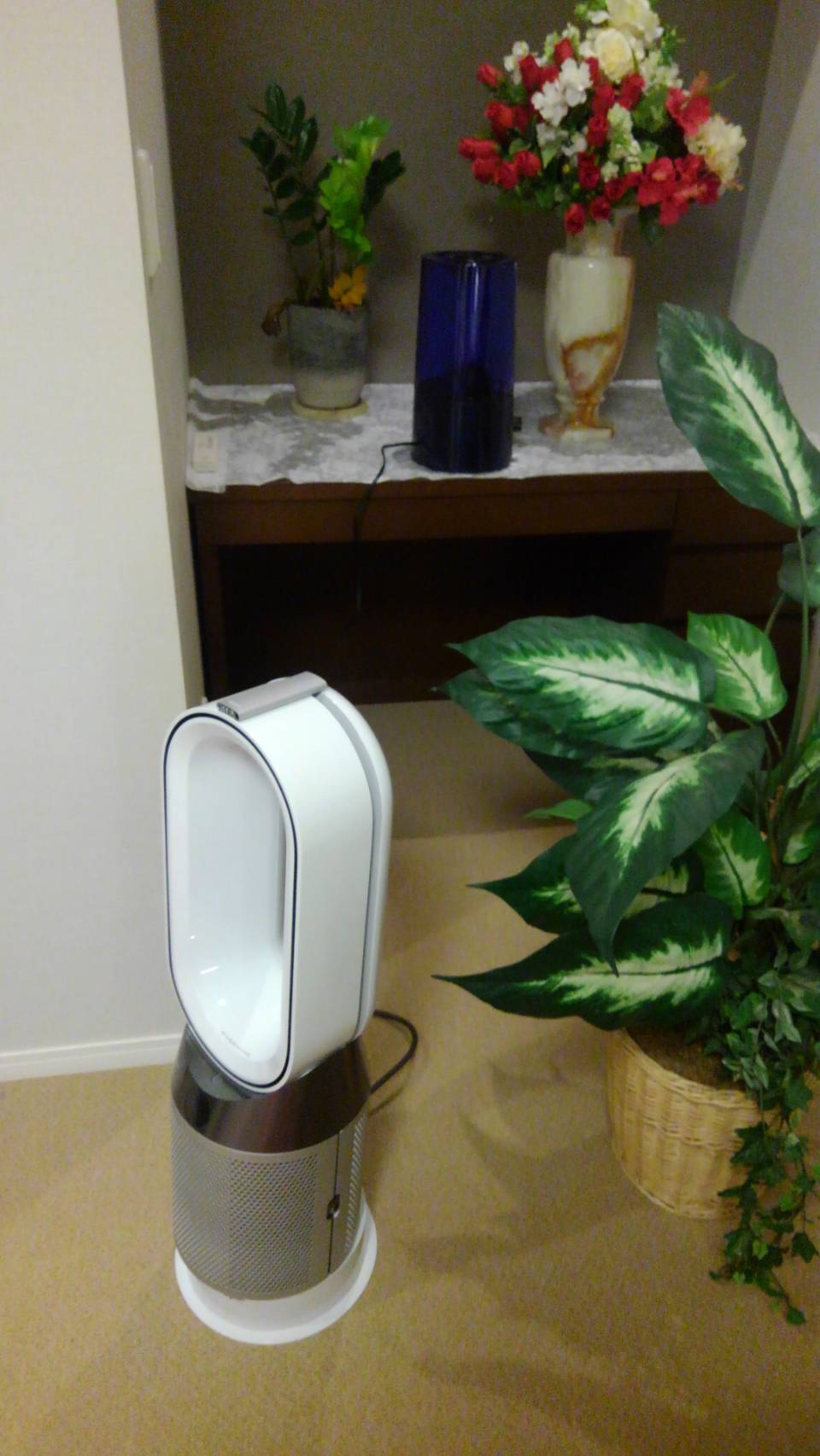 ダイソンの空気清浄機と、奥に見えるブルーの機械は、空気除菌の加湿器になります。