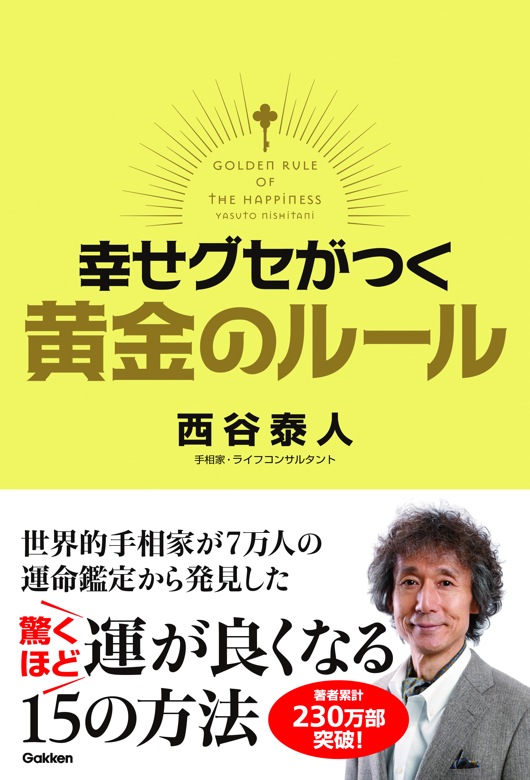 2016/6/22 6月30日、西谷泰人の最新刊が全国一斉発売! 皆さん! 西谷泰人の最新刊が、来る6月30日(木)に発売となります。 タイトルは、『幸せグセがつく 黄金のルール』(学研刊 定価 1400円+税)。 カバージャケットの写真では分からないと思いますが、 実は、表紙タイトルの「黄金のルール」、そして上部の放射状のデザインは、金箔を使用し、キラキラと輝いています! 本書は、西谷泰人の全書籍の中でも、間違いなく代表作の一つです。 本書を読んだ人が・・・ 出来上がって届いた本書を読んだ人が、 「先生、この本、面白すぎます!」 と言って、夢中に読んでいました。 内容は、 世界的手相家が7万人の運命鑑定から発見した 驚くほど運が良くなる15の方法 西谷泰人が運命学について書いた、目からウロコの内容が満載!の一冊です。 詳しくは、読んでのお楽しみに。 そして、今回の帯には、 ≪著者累計 230万部突破!≫ と記されています。 発売日の詳細 本書の6月30日発売について、もう少し詳しく説明すれば・・・。 ★6月28日(火)午前中に、取次に一度本が入り、当日午後に、そこからトラックに振り分けられて、全国各地へ出発。 一番早い書店では、28日の夜(都内の有名書店の2~3書店ぐらい)の店頭で、購入することが出来るでしょう。 ★6月29日の一日掛けて、関東や関西のみならず全国書店に、新刊が届く予定です。 そして夕方以降(夜には)、店頭に並ぶ書店が、ポツポツ出てくるでしょう。 ★そして6月30日には、全国各地に配本された本が、書店の店頭に並ぶでしょう (占いコーナーに並ぶ予定です)。 その為、今回は6月30日発売、と表示しました。 (通販会社ではどこも、6月28日頃 発売 と記載されています。) 通販では、すでに予約受付中! 本書に関しましては、創文での通販販売は、行ないません。 通販で購入ご希望の方は、アマゾンをはじめ、他の通販をご利用下さい。 すでに、どこの通販会社も、本書は 「予約受付中」 となっています。 という事で、最新刊発売! のお知らせでした! 西谷泰人 鑑定日記 < 手相 方位 夢判断 開運 >