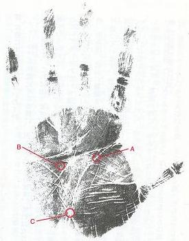 | <性格> 天才マンガ家・赤塚氏の手相は、小ジワのない基本線と少々の線が出ただけのものです。これは肉体労働に向く手相であり、現に赤塚氏はマンガ家になる前3年間、土方をやっていたそうです。(大体、作家は繊細で、漫画家はサッパリ型が多い。) <結婚> Aの恋愛線が24歳で奥様と出会い大恋愛となった印。結婚はその2年後。 <才能> Bの地点(知能線上)より昇る太陽線が勢い良く出ており、才能で大成し名声を得る運命を示しています。 <健康> 生命線を切るCの2本の健康線はそれぞれ、61歳・食道ガンで半年入院、63歳・自宅で転倒、硬膜下血腫での入院を示している。 赤塚不二夫さんの 手相鑑定エピソード (2006年11月9日西谷泰人の鑑定日記より) |
