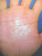 はなわさんの手相 2003年が彼にとって大飛躍の年! 2003年が彼にとって大飛躍だった。彼の知能線は手のひらでハッキリ枝分かれしていますが、その2つに分かれた知能線の流年(年齢)で起こった今回の大ブレイクでした。 急に違う世界に入ったり、今までと運命がガラリと変わる相なのです。 彼の運命線や太陽線は、この写真ではよく見えません。でも実際には、26歳の終わり頃からハッキリと太陽線が昇っていて、その時から急に有名になって行くことを示していたのです。 はなわさん、先日テレビで、あなたのことを『平凡の相』とか言ったのですが、実際のあなたは、26歳の終わり頃から大いに名声を上げ、成功者となることを手相は予告していましたよ。 バラエティー番組だったので、運のいい成功者に、「あなたは運がいい人だ」、なんて言ったって全然面白くも何ともないので言わなかったけど、あなたは素晴らしく運のいい手相をしていますよ。 |