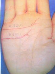 恋愛を現す感情線が、2本もある「二重感情線」だ! まず、感情線というのは恋愛関係を見る線。その線が2本もあるという事は、もの凄くユニークな恋愛感覚の持ち主であるのは言うまでもありません。それがオカマのKABAちゃんの感情線。でもこの感情線が2本もある人は、モテモテで、異性、に限らず、(求めれば)同性の恋人にもモテモテで、大変恵まれる人です。 それからカバちゃんの手のひらには、小じわがない! これは細かなことにくよくよしない、人の目なんて全然気にしないタイプなのです。だから、ナント言われようと、マイペースに生きているKABAチャンなのです。 |